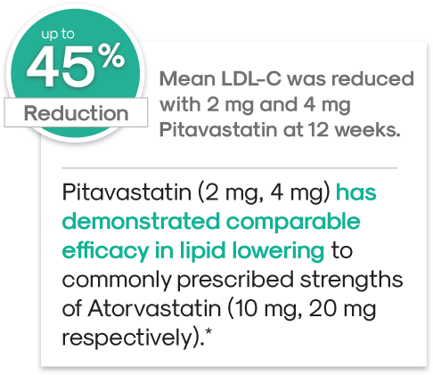 * Pitavastatin was not studied against Atorvastatin 40 mg and 80 mg doses.